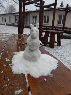 Passend zur Jahreszeit schickte Frau Holle doch noch ein paar Schneeflocken zu uns. So entstand auch dieser lustige Schneehase.
