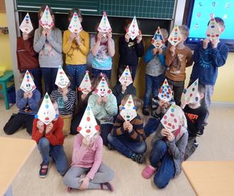 Im Werkenunterricht der 1. Klasse entstanden durch falten, schneiden, kleben und malen lustige Clowns.