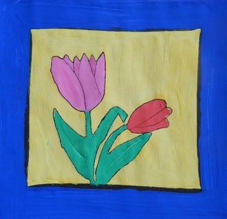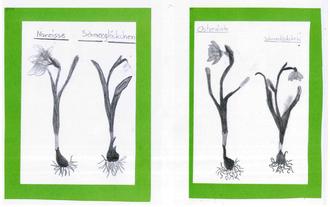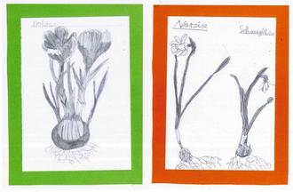 Im Rahmen des Kunstunterrichtes der 3. Klassen entstanden auch diese Kunstwerke von Frühblühern.