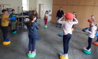 Mit Beginn des 2. Halbjahres stehen Teamspiele auf dem Stundenplan unserer Grundschüler. Immer montags schulen die Kinder ihre Teamfähigkeit mit Hilfe spielerischer Bewegungsübungen. Dabei spielen Stapelsteine eine besondere Rolle. Manches Kind staunte nicht schlecht, was man alles damit anstellen kann.