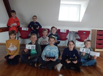 … hieß es für die Kinder der Klasse 2b, denn sie wollten einen Hörspaziergang durchführen. Dazu brauchten sie ein Tablet, einen Plan und einen Hörplan mit QR-Codes. Nach der Erklärung begaben sich die Kinder immer zu zweit „Auf die Suche nach dem Zauberstab“. Dabei mussten sie an jeder Station ganz genau zuhören, um den richtigen Weg zu finden und die Lösungsbuchstaben zu sammeln. Es hat allen viel Spaß gemacht.
