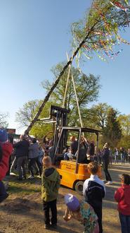 Nach dem Aufstellen des geschmückten Maibaums um 18:00 Uhr haben auch die Kinder wieder Gelegenheit, durch Kletterkünste Preise von der Kletterstange zu erbeuten.