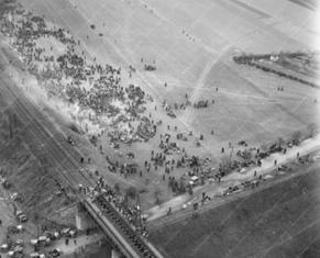 Flüchtlinge im 2. Weltkrieg an der Eisenbahnbrücke über die Mulde (Quelle: trolley-mission.de)