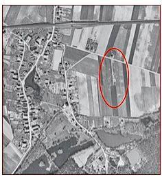Beschuss der Flakstellung auf dem Wiesenberg in Altenbach: Ausschnitt aus dem Foto Nr. 2027 der Luftaufklärung der 3. US-Armee vom 10. April 1945 (Quelle: Luftbilddatenbank Dr. Carls GmbH)