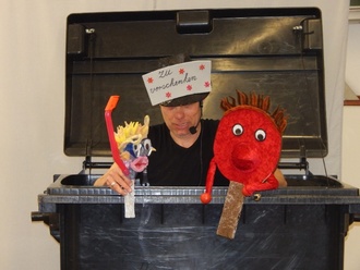 In 4 Stunden erfuhren die Kinder das Wichtigste zu den Themen Mülltrennung und Möglichkeiten der Wiederverwendung. Bei einem informativen Film lernten alle Herrn Sticknich kennen und schauten gebannt zu, dass selbst eine Banane wiederverwendet werden kann, denn als Erde nach der Kompostierung können wir die Erde im Garten nutzen. Auch das ihre Papierreste aufbereitet werden und dann einen neuen Verwendungszweck bekommen, war für die Kinder spannend. Im Quiz konnte das Gelernte dann angewendet werden. Ein Mitarbeiter der KELL beantwortete alle Fragen. In einem amüsanten Theaterstück trat Herr Sticknich persönlich auf. Mit Liedern und lustigen Charakteren wurden die Kinder erinnert, dass nicht alle kaputten Gegenstände direkt weggeworfen werden müssen, sondern das man es reparieren kann, oder Dinge, die man nicht mehr braucht, verschenken kann und jemand anderes daran Freude hat.