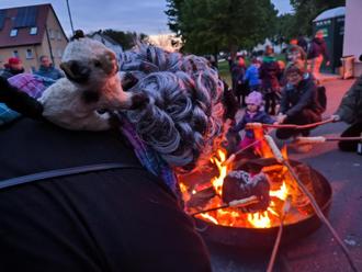 Hexen in Deuben, wo man geht und steht! Schon am Eingang des Dorfes war es zu sehen: hier sausten gerade die Hexen ein und luden Kinder und ihre Familien zum 1. Deubener Walpurgisfeuer ein.Am Freitag, den 26. April, brannte das Feuer pünktlich um 17:30 Uhr zur Eröffnung. Sie kamen eingeschwebt an der Feuerwehrdrehleiter, auf dem Motorrad, auf dem Hexenfahrrad mit Raben und aus jeder Ecke des Dorfes gelaufen, die Deubener Dorfhexen folgten dem Ruf der Kinder und tanzten sogleich ihren Hexentanz. Mit Hexensuppe und allerlei Walpurgisgesöff konnten sich alle großen und kleinen Gäste stärken bevor zum Hexenbesenweitruf gerufen wurde. Das hat den Kindern genauso viel Spaß gemacht wie das Knüppelkuchenbacken am lodernden Hexenfeuer. Die Stimmung war toll. Viele kostümierte Hexen und Teufel, gruselige Deko und ein lauer Frühlingsabend machten das 1. Deubener Walpurgisfeuer zu einem kleinen Höhepunkt im Dorf.