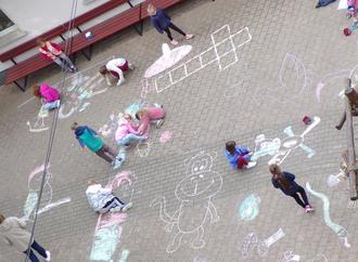 Am Weltkindermaltag haben sich alle Klassen der Grundschule Bennewitz auf dem Schulhof versammelt. Dann ging es los! Alle Kinder holten sich Kreide und malten den ganzen Schulhof mit Bildern zum diesjährigen Thema „Wunderbarer Wald“ voll. Am Ende sah alles richtig schön aus.