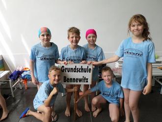 Nach dem beeindruckenden Sieg beim Vorausscheid der Grundschulen nahm die Grundschule Bennewitz am Regionalfinale im Schwimmwettkampf bei Jugend trainiert für Olympia in Leipzig teil und erzielte einen beachtlichen 7. Platz. Der Wettbewerb fand am 16. Mai 2024 in der Schwimmhalle West statt und brachte zehn Mannschaften aus Leipzig und Umgebung zusammen. Unter den teilnehmenden Schulen befanden sich auch mehrere Grundschulen mit sportlichem Schwerpunkt. Sechs talentierte Kinder aus der 2. Klassenstufe traten für unsere Schule in vier verschiedenen Staffeln an. Trotz der starken Konkurrenz zeigten die jungen Schwimmerinnen und Schwimmer großen Einsatz und kämpften bis zur letzten Bahn. Wir gratulieren unseren Kindern ganz herzlich zu diesem Erfolg.