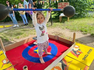 Im Anschluss an das Programm konnten die Kinder die verschiedenen Stationen, wie Basteln, Seifenblasen, Balancieren und Ballwerfen durchlaufen und sich einen Preis ergattern. Auch für unsere Kleinsten war gesorgt. In unserem „Minizirkus“ konnten sie sich entspannt im Bällebad oder beim Enten einfangen vergnügen.