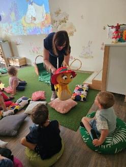 Im Anschluss besuchte uns die Kinderbuchautorin Kati Naumann mit ihrer Schnecke Monika Häuschen. In einer zauberhaften Lesung verwandelte Frau Naumann unser Gruppenzimmer in einen Phantasiegarten, wo alle Kindergartenkinder der Schnecke Monika, dem Regenwurm Schorsch und dem Graugänserich Herrn Günther bei einem Abenteuer beiwohnen durften.