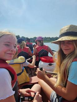 Am Montag, den 8. Juli starteten 18 gut gelaunte Kinder und Jugendliche mit uns Richtung Spreewald – erst mit der Bahn nach Lübben, wo unsere hilfsbereiten Bauhofkollegen samt Lieblingshausmeister bereits unsere Fahrräder abgesetzt hatten - und von dort aus weiter mit den Rädern nach Alt Schadow. Nach einer 30 km Anreise inkl. zweier Softeisstopps (ein dickes Dankeschön an Familie Bach aus Schmölen und Familie Freudenberg aus Deuben für die spendierte Eisverpflegungspauschale) landeten wir gegen 17 Uhr, fix und alle, aber wohl auf, auf dem Campingplatz NORD. Dann folgte der Aufbau der Gruppenjurte, die uns freundlicherweise die Pfadfinder zur Verfügung stellten, Anbaden, Essen fassen, Duschen und XXL Belehrung bis Mitternacht, so ging der erste anstrengende, aber coole Tag zu Ende.