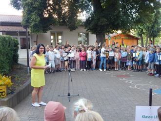 Am 11. August 2025 trafen sich alle Kinder unserer Grundschule auf dem Schulhof zur traditionellen Schülerversammlung. Dabei begrüßte Frau Lehmann auch noch einmal die Schulanfänger. Anschließend gab es in den Klassen viel zu erzählen, aber auch wichtige Belehrungen und Regeln wurden besprochen.