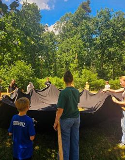 Am 14.08.25 starteten insgesamt 23 Kinder und Jugendliche, darunter ein Jugendlicher mit Jugendleitercard plus 2 ehrenamtliche Unterstützer und wir mit Bus und Bahn an den Halbendorfer See. Wie sich vielleicht einige Leser erinnern können, waren wir im vorigen Jahr von einer Superzelle mit Starkregen erwischt wurden, was unsere Gruppenjurte im Spreewald zum Einsturz brachte und all unser Hab und Gut begrub. Damals musste das Sommercamp abgebrochen werden und genau das sollte uns in diesem Jahr nicht noch einmal passieren.