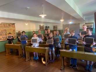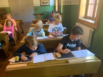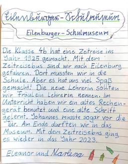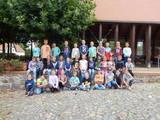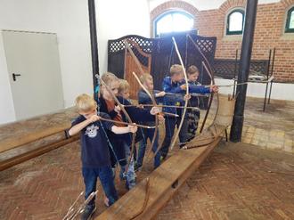 Wir, die Kinder der 3. Klassen, sind mit dem Bus nach Canitz gefahren. Dort warteten einige Stationen auf uns: Bogen schießen, Körnerbilder gestalten und Getreide kennenlernen. Wir haben auch selber Mehl wie in der Steinzeit gemah-len. Wir haben uns auch das Taubenhaus, die Dreschmaschine und die Kartoffel-schleuder angeschaut. Dann haben wir Fladen mit Quark und auch eine Brat-wurst gegessen. Uns hat es sehr viel Spaß gemacht und wir würden da gern nochmal hinfahren.