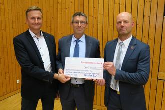 Infrastrukturstaatssekretär Uwe Schüler (MItte) übergab an Bauamtsleiter Chris Heller (links) und Bürgermeister Marco Babenz einen Zuwendungscheid.