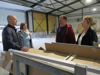 Bürgermeister und Wirtschaftsförderin (v. links) beim ersten Firmenbesuch bei Metall & Systembau Mitschke Verwaltungs GmbH.