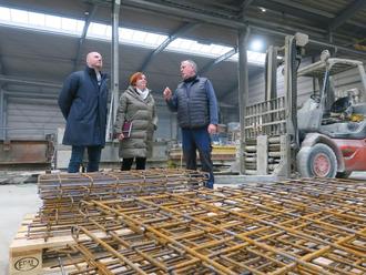Beeindruckende Zahlen hat auch das Unternehmen MR-Bahn zu bieten, welches Bürgermeister und Wirtschaftsförderin nach ihrer Visite bei der BP Saßleben besuchten. Kurz vor dem Ortsausgang, in der Senftenberger Straße 4a, befindet sich der Produktionssitz der MR-Bahn GmbH und Co. KG. Werkleiter Kay-Steffen Richter informierte beim Vorort-Termin und Werksrundgang über die Leistungsfähigkeit des Unternehmens. Die MR-Bahn GmbH & Co. KG wurde im Oktober 2020 als gemeinsames Tochterunternehmen der Wilhelm Röser Söhne GmbH & Co. KG und der Bernhard Müller Betonsteinwerk GmbH gegründet. Während RIB RÖSER GmbH & Co. KG im Jahr 2026 stolze 100 Jahre Firmenjubiläum feiern darf, blickt Beton Müller bereits auf über 135 Jahre alte Firmengeschichte zurück. Seit der Übernahme des Produktionsstandortes in Calau des ehemaligen Unternehmens Eifeler Betonbauteile GmbH werden nationale sowie internationale Kunden im Bahn-, Verkehrs- und Industriebau beliefert. So werden vor allem Betonteile für den Spezialeinsatz im Eisenbahnbereich angefertigt. Zum Portfolio des Betriebs gehören unter anderem Betonkabelkanäle oder komplette Teile für Bahnsteiganlagen. Einer der Kunden hierbei ist die Deutsche Bahn oder Subunternehmen, welche für den Konzern tätig sind. „Aktuell haben wir 17 Mitarbeiter in zwei Schichten am Standort Calau im Einsatz. Wir suchen aber jederzeit neue Kollegen, die unser Team unterstützen möchten“, erklärte der Werkleiter. Im kommenden Jahr wolle man zudem Lehrstellen im Bereich Betonfacharbeiter anbieten.
