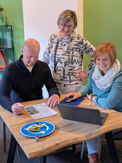 Unter den "kritischen" Augen von Fahrlererin Simone Saar füllten der Bürgermeister und die Wirtschaftsförderin einen Fragebogen für die Theorieprüfung aus...