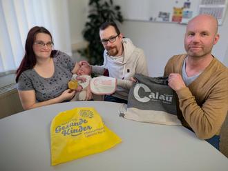 Beide Familien erhielten vom Bürgermeister als Geschenk im Rahmen der "Calauer Baby-Aktion" ein besticktes Babylätzchen mit dem Logo der Stadt Calau. Dazu gab es einen Stoffrucksack mit allerhand nützlichen Informationen für junge Eltern, die freundlicherweise von der Bundeszentrale für gesundheitliche Aufklärung (BZGA) zur Verfügung gestellt wurden. Ein paar selbst gehäkelte Söckchen sowie ein exklusiver Untersetzer fürs Babyfläschchen rundeten das Willkommenspaket ab.