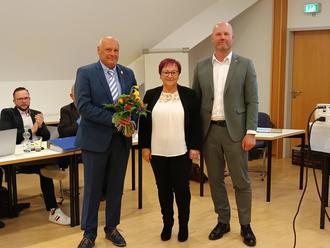 Im Rahmen der Stadtverordnetenversammlung am 26. März wurde die bisherige Kämmerin Barbara Hollmichel (Bildmitte) in den Ruhestand verabschiedet. Der Vorsitzende der Stadtverordnetenversammlung, Knut Jende (links), und Bürgermeister Marco Babenz bedankten sich für 42 Jahre Einsatz für die Calauer Finanzen.