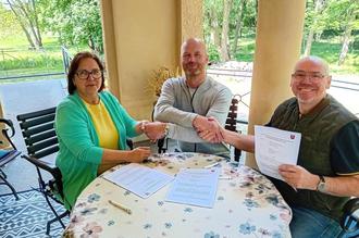 Mit dem Rittergut Kemmen hat das Standesamt der Stadt Calau seit letztem Monat eine neue Außenstelle. Am 8. Mai unterzeichnete Bürgermeister Marco Babenz gemeinsam mit Kerstin und Thomas Zoch vom Rittergut den entsprechenden Vertrag. Das Stadtoberhaupt lobte dabei: „Es ist beeindruckend, was hier in Kemmen entstanden ist. Umso schöner ist es, dass nun Eheleute hier ihren ´Schönsten Tag im Leben´ in würdigem Ambiente feiern können.“ Die ersten Termine für die Trauungen vor Ort stehen bereits fest. Neben dem Rittergut Kemmen gibt es mit dem Herrenhaus Groß Jehser und der Gutskapelle Reuden zwei weitere besondere Orte, die für das Ja-Wort zur Verfügung stehen. Der am meisten gewählte Standort ist jedoch das Trauzimmer im historischen Rathaus. Nähere Informationen finden Sie unter www.calau.de/hochzeit