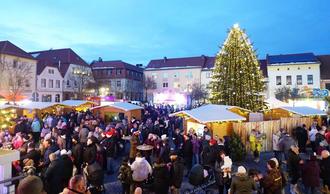 2023 schmückte eine Nordmanntanne den Calauer Weihnachtsmarkt. Gestiftet wurde diese von einer Familie aus Mlode.