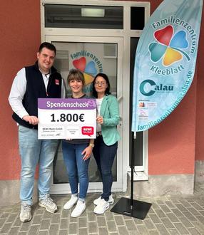Schon im vergangenen Jahr wurde dem Familienzentrum Kleeblatt eine weitere Unterstützung des Calauer REWE-Marktes zugesichert. Am 2. Juni war es dann soweit: Marktleiter Lukas Teichmann (links im Bild) überreichte im Familienzentrum eine Spende in Höhe von 1.800 Euro. Simone Zinke (rechts im Bild), Sachgebietsleiterin im Haupt- und Ordnungsamt, sowie Anna Ungerechts (Bildmitte), die Leiterin des Familienzentrums, nahmen die Zuwendung dankbar entgegen. Sie freuten sich über die erneute Unterstützung, hilft diese doch, die vielfältigen Angebote für alle Generationen aufrecht zu erhalten.