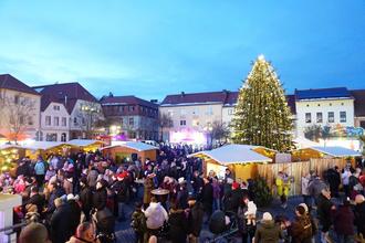 2023 schmückte eine Nordmanntanne den Calauer Weihnachtsmarkt. Gestiftet wurde diese von einer Familie aus Mlode.
