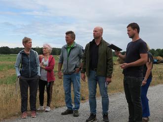 Bürgermeister Marco Babenz (2. v. rechts) mit Ortsvorsteher Dennis Urban (rechts) und Anwohnern beim Rundgang durch Erlenau.