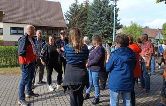 Der Bürgermeister begrüßte rund 30 Gäste beim Rundgang durch Buckow.