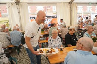 Bei der beliebten Kaffeetafel des Seniorenbeirates am Samstagvormittag verteilte Bürgermeister höchstpersönlich leckeres Backwerk an die Gäste.
