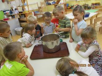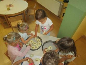 Unsere Spatzen und Igel stellen aus eigener Apfelernte leckere Apfelringe und selbstgemachten Apfelmus her. Unsere Mäuse und Käfer gestalten die Kitaräume in herbstlich, bunten Farben. Somit läuten wir in unserer Kita offiziell den Herbst ein. In diesem Sinne, möchten wir und bei den Eltern nochmals für die mitgebrachten Äpfel bedanken.