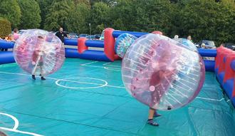 Besonderen Spaß machte der Bubble-Fußball. Die Spieler befinden sich dazu in einer riesigen aufblasbaren Kugel.