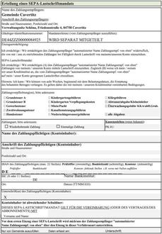 Dafür müssen Sie ein neues SEPA-Lastschriftmandat erteilen. Das Formular finden Sie auf der Homepage unter www.cavertitz.de/Informationen/Formulare.