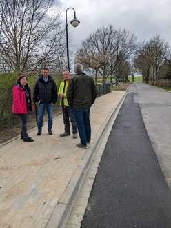 Die nicht mehr benötigten 3 Leuchtpunkt der Straßenbeleuchtung wurden zurückgebaut, eine Leuchte an einen Übergang versetzt und die verbleibenden Leuchtenköpfe entsprechend der fußläufigen Nutzung gedreht.