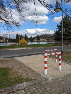 An allen drei Abgängen vom Parkplatz wurden Umlaufsperren eingebaut, um ein Abstoppen des fußläufigen Verkehres vor Querung der Fahrbahn bzw. Passieren des Gehweges montiert, um eine größtmögliche Sicherheit zu erzielen.