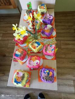 Gemeinsam mit unseren Erzieherinnen begannen wir mit den Ostervorbereitungen. Wir hörten eine Ostergeschichte und sangen einige Frühlings- und Osterlieder.