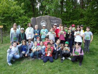 Der 20. Mai war für die Dritt – und Viertklässler unserer Schule wieder ein Schultag besonderer Art. Wir konnten an den Waldjugendspielen teilnehmen. Mitten im Wermsdorfer Wald hatten die Forstwirte vom Sachsenforst verschiedene Stationen aufgebaut. So gingen die Gruppen, benannt nach Waldtieren, wie „Eichhörnchen“, „Rehe“, „Wölfe“ los und begannen ihr Wissen über Pflanzen und Tiere des Waldes unter Beweis zu stellen. Wie schütze und pflege ich den Wald? Wie nutzen wir den Wald? – waren Fragen, die zu beantworten waren. Beim Holzstapeln ging es um die Wette. Wer baut am schnellsten einen Mini – Polter auf? Eine Station ließ die Kinder den Wald besonders nahe kommen: Lausche einmal! Was kannst du hören? Wie klingt es um dich herum? So verging die Zeit wie im Flug. Bei einem leckeren Mittagessen konnten sich alle stärken. Nach der Auswertung gab es für alle einen praktischen Schal – Loop mit Waldtieren bedruckt.