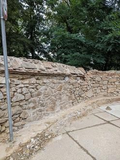 Die vorhandene Mauerkrone soll in den Bereichen, in welchen diese noch die Dachform aufweist (außerhalb des Grottenbereiches), wiederum in Dachform ausgebildet, mit Natursteinen abgedeckt und verfugt werden.
