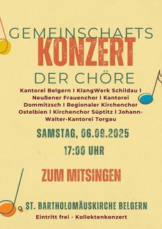 | 14:00 Uhr | Liebersee | Gottesdienst zu Erntedank mit Chor |