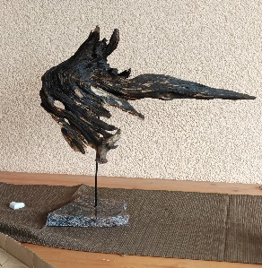 Deutlich zu spüren ist ihre Liebe zum Fluss, welcher unsere Landschaft maßgeblich prägt. Aus Fundstücken kreiert sie wundersam anmutende mystische Skulpturen. Außerdem möchte sie sie in Bildern auf eine Reise nach Slowenien mitnehmen