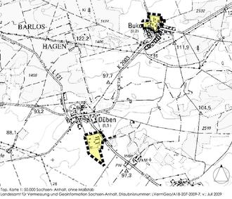 | - | im Norden durch Landwirtschaftsflächen zwischen dem Betriebsstandort und der Ortslage Düben; |