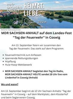 MDR SACHSEN-ANHALT auf dem Landes-Fest "Tag der Feuerwehr" in Coswig