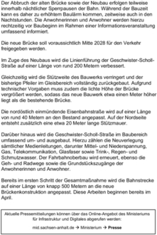 Brückenkonstruktion angepasst. Diese Arbeiten beginnen bereits im