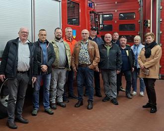 Die Miglieder des Technischen Ausschusses vor Ort im Gerätehaus der Ortswehr Cunewalde am Schützenplatz.