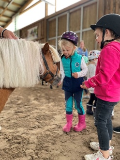 Der Besuch bei Familie Wulschner im Reiterhof Börln war am 03.08.2023 für unsere „Börlner Spatzen“ ein spannendes Erlebnis, bei dem sie die Pferde hautnah erleben und kennenlernen durften. Dazu gehörten das Anfassen, Streicheln, Füttern und Reiten der Tiere. Insgesamt waren die Kinder mit großer Begeisterung dabei, die Stimmung war sehr freundlich und die Pferde haben die vielen Kinder um sie herum gelassen genommen.