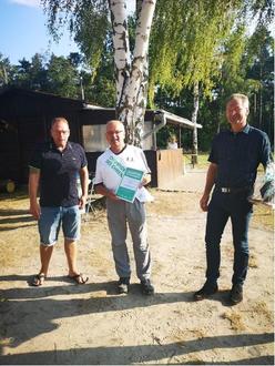 Am Sonntag, dem 1. September 2024 konnten wir unser Vereinsmitglied Frank Jahn (Übungsleiter Nordic Walking) mit der Auszeichnung im Sportvereinswettbewerb 2024 "Champion des Ehrenamtes" überraschen. Die Übergabe erfolgte im Rahmen des Aktionstag "Heidewalking", einer Laufveranstaltung mit diesmal 30-40 Nordic Walkern. Der Bürgermeister der Stadt Dahlen unterstütze die Ehrung.