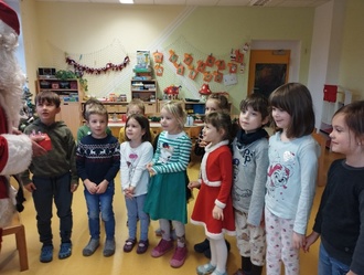 Eine große Überraschung war der Einzug unseres Weihnachtswichtels. Auf einmal fanden wir eine Baustelle und Umzugskartons auf einem unserer Fensterbretter und nach nur einer Woche stand ein fertiges Holzhaus an der Stelle. Unser Wichtel trieb manchmal ganz schönen Unfug, indem er unser Lebkuchenhaus anknabberte, unsere Milch rot und grün färbte oder im Bad mit den leeren Toilettenpapierrollen ein Gesicht bastelte. Ab und zu fanden wir auch bei ihm einen Brief, wo er uns Aufgaben erteilte, wie Basteln in der Wichtelwerkstatt. Außerdem half er manchen Kindern beim Gespräch mit ihren Eltern, wenn sie etwas beichten mussten und stand ihnen dabei zur Seite. Wir haben uns sehr gefreut, dass dieses Jahr ein Wichtel bei uns sein Zuhause gefunden hat.