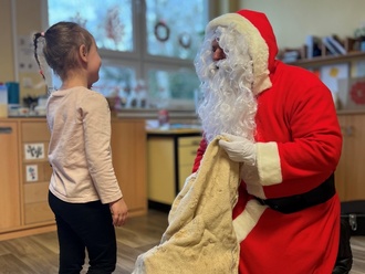 Ganz still und mit leuchtenden Augen saßen die Kinder da und trauten Ihren Augen kaum, als der Weihnachtsmann, beladen mit Geschenken, den Raum betrat. Mit einem freundlichen Lächeln und guten Worten zauberte er sich in die Herzen der Kinder, die bald ihre anfängliche Scheu verloren.