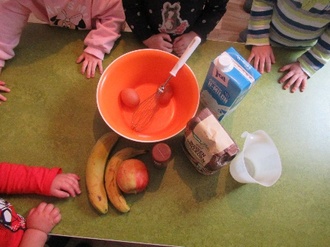 Jeden Monat bereitet eine andere Gruppe die Vesper für alle Kinder in unserer Kita zu. Gemeinsam wählen die Kinder die Speisen aus, kaufen sie hin und wieder mit ein, und stellen dann die Menüs zusammen her.